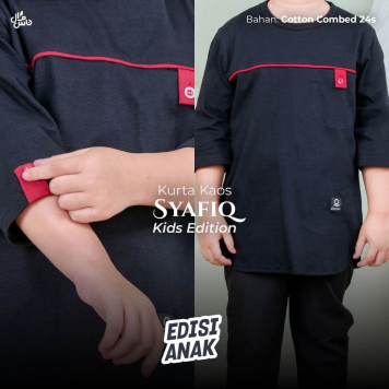 Kurta Anak Syafiq dengan model rapi dan elegan ini hadir dengan bahan katun kaos 24S.